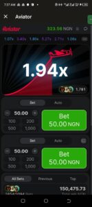 Whether you’re on the app or site, the Aviator game on SportyBet is the same. Take a look at the image below: